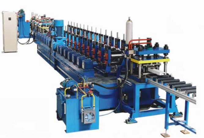 電氣罩殼自動生產(chǎn)線該生產(chǎn)線由上料小車、開卷機(jī)、入料導(dǎo)正、沖孔、切斷、輥壓成型機(jī)、成型剪、自動碼垛、液壓系統(tǒng)、電氣控制系統(tǒng)組成。該生產(chǎn)線在線不停機(jī)沖孔、不停機(jī)切斷